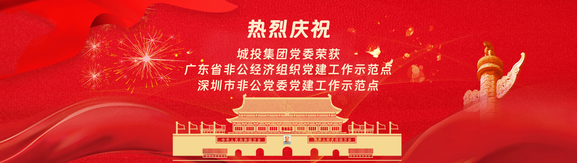 在上級黨委的正確領導下,在城投集團的大力支持下,集團黨委緊緊圍繞企業發展戰略,將黨建引領核心貫穿始終,以五心工程(即思政建設核心工程、經營發展中心工程、企業文化向心工程、黨建品牌匠心工程、服務基層愛心工程)為抓手,大膽探索,勇于突破和創新,不斷形成城投黨建特色,有效輸出城投實踐經驗,充分發揮紅色引擎作用,先后獲得深圳市非公黨委黨建工作示范點、深圳市兩新組織黨建工作示范點深圳市文明單位深圳市先進基層黨組織廣東省非公有制經濟領域黨建工作示范點等榮譽稱號。